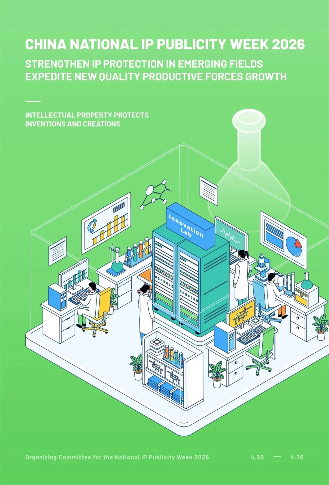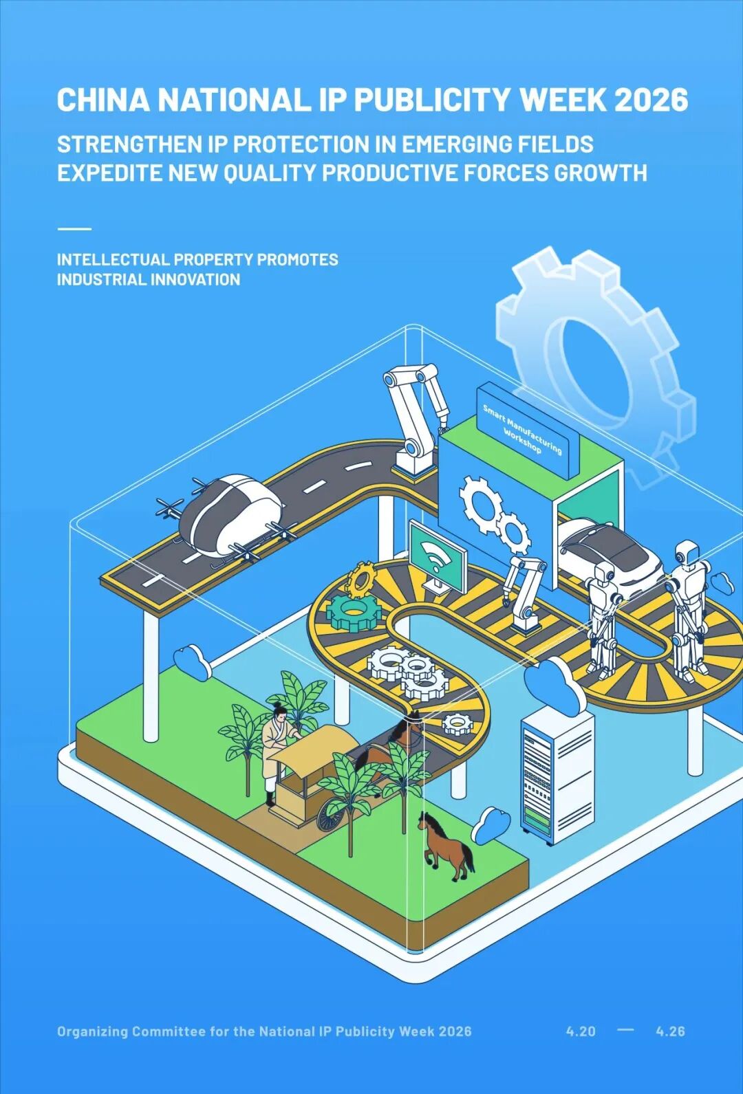 4月20日,主题为“加强新兴领域知识产权保护 加快新质生产力发展”的2026年全国知识产权宣传周活动即将开展,大家期待已久的宣传周主题海报今天正式亮相!今年我们特别设计了一套四张中文版海报,并首次推出英文版海报,邀您先睹为快!